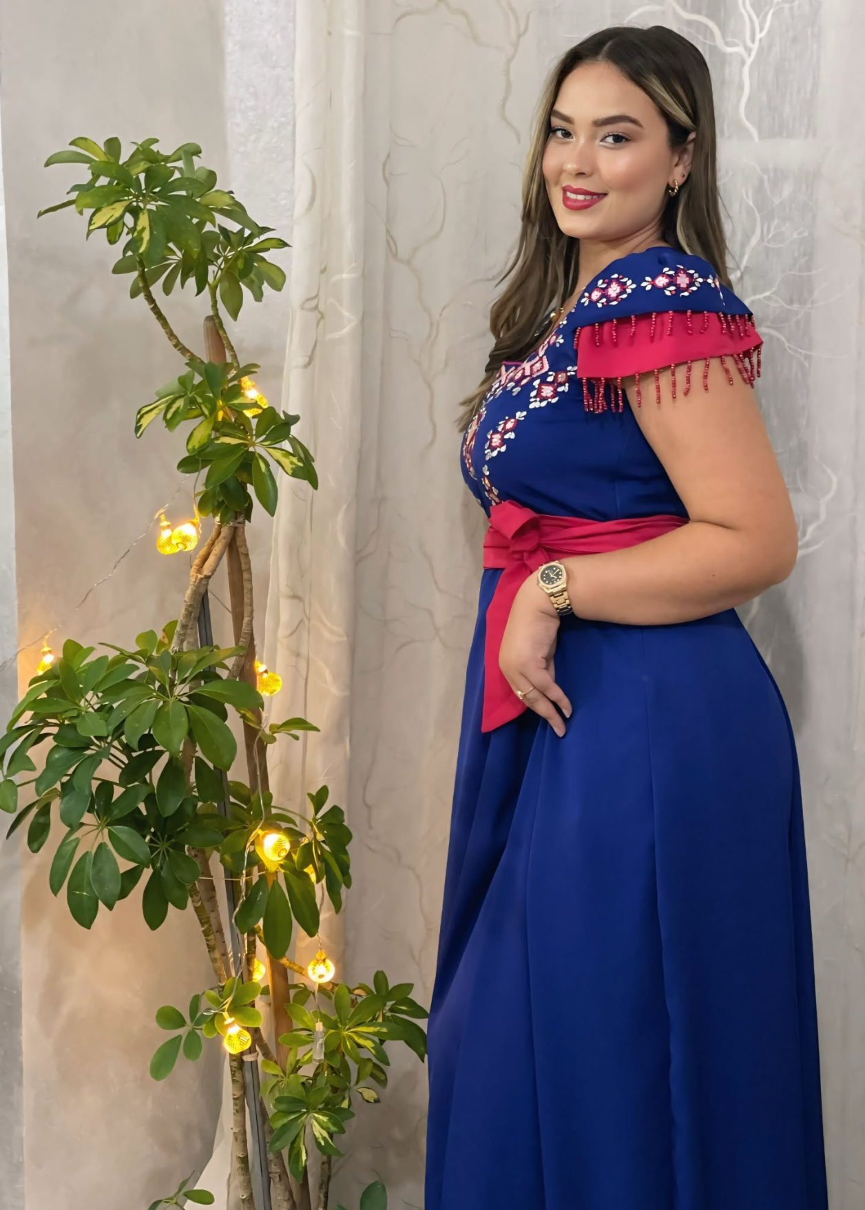 Laissez-vous séduire par cette magnifique robe kabyle revisitée dans un style moderne. Confectionnée dans un tissu fluide bleu royal, elle se distingue par ses broderies berbères colorées et ses touches de franges rouges raffinées. La ceinture contrastante met en valeur la taille et apporte une note de féminité. Parfaite pour les célébrations, mariages ou soirées, cette robe allie authenticité et modernité avec élégance.